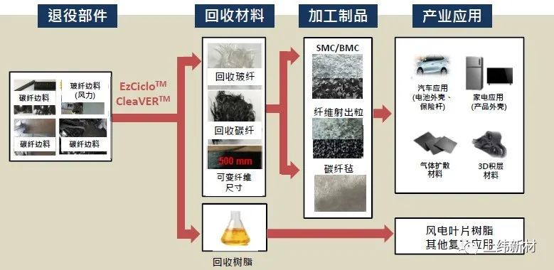 - 经CleaVER降解体系降解后的新型EzCiclo可回收热固树脂树脂及纤维可回收再利用在原来应用领域。
