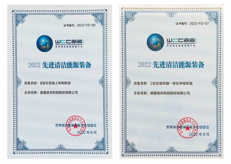 8月27日,由工业和信息化部与四川省共同主办的“2022世界清洁能源装备大会”在四川省德阳市隆重召开。在由大会组委会开展的2022年度先进清洁能源装备推介中,金风科技8MW级海上风电机组和2MW级风储一体化风电机组成功入选“2022先进清洁能源装备名单”。