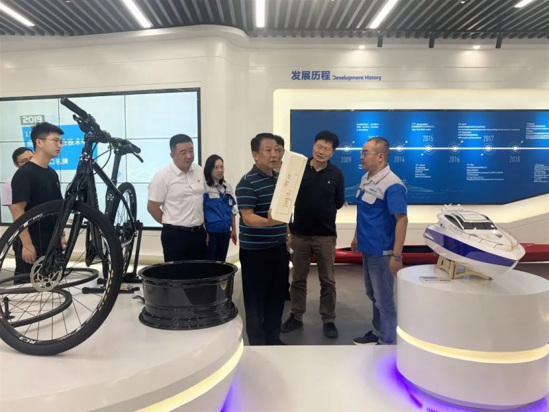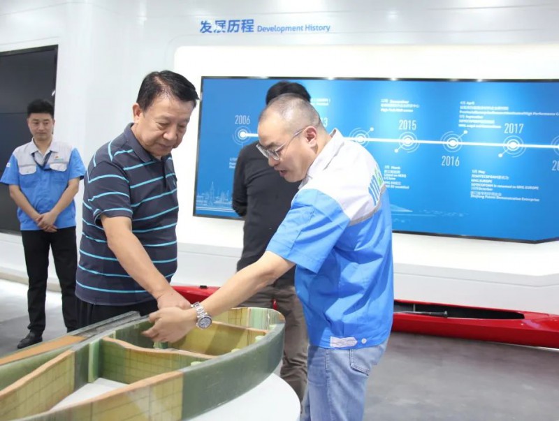 张联盟院士一行在董事长蔡正杰的陪同下参观了展厅、纤维复材事业部织物车间和高分子复材事业部发泡车间。张联盟院士对于公司产品在风力叶片上的应用与董事长进行了深入交流,对于公司服务绿色产业,践行“新材料让世界更绿色”这一崇高使命给予了充分肯定。