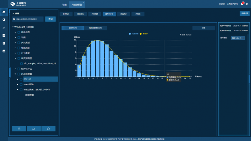 想运用风所蕴含的强大能量,就必须先熟悉风的习性。电气风电推出的WINDSIGHT·“巽鸣”风电场数字化设计平台,能集成完整的风资源评估工作流程,对风电场全生命周期过程中产生的海量信息进行统一收集、清洗、分析、利用以及管理,同时借助云服务技术,为数据信息的精细化处理赋能,有针对性地解决了传统风资源评估过程缺乏精细化全过程标准方法体系、统一管理平台的难题。