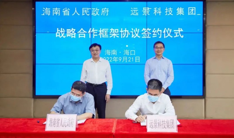9月21日,远景科技集团与海南省政府签署战略合作协议,双方将在生物合成产业、新能源装备等领域进行深度合作,共同构建绿色新工业体系,将海南的自贸港优势和绿色资源优势转变为现代产业优势,推进海南自贸港双碳战略达成。