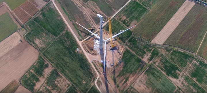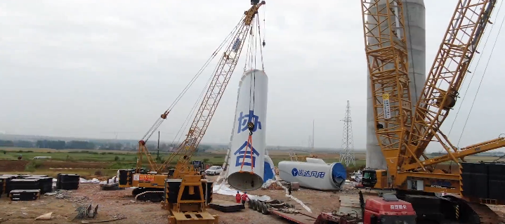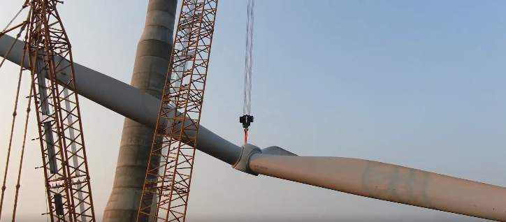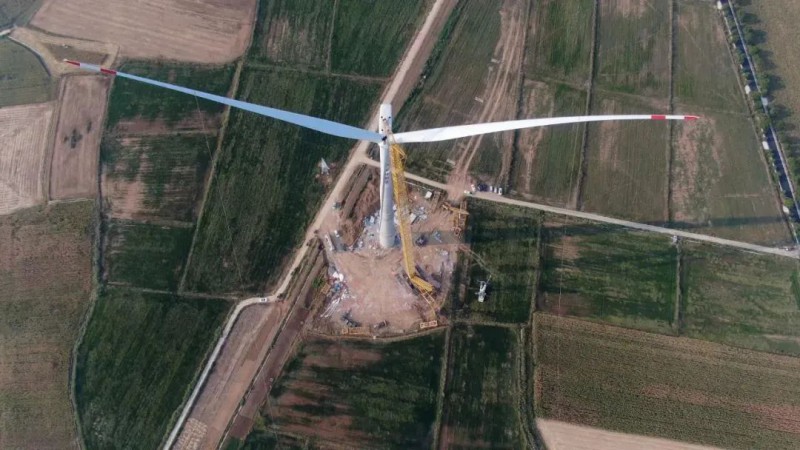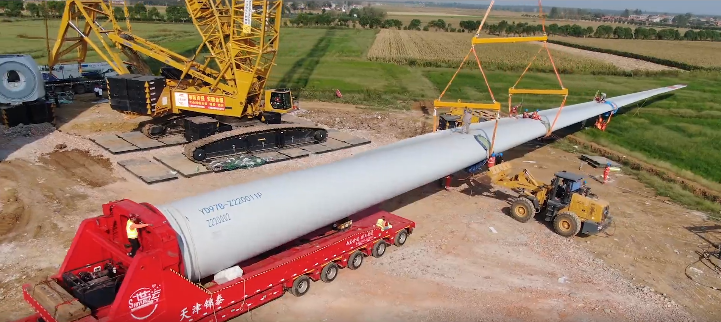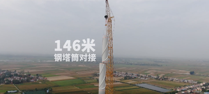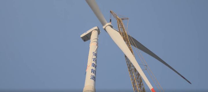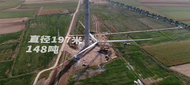 本次吊装的运达股份5MW风电机组单片长度97米,最大直径达到200米,轮毂中心高度达到166米,此前国内的纪录是直径191米与高度160米。首吊结束后,一期项目20台风机计划将在今年12月并网。