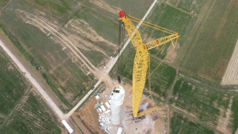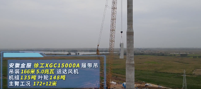 近日,在湖北襄阳,襄北风储一体化风电场的首台大高度、大兆瓦混塔风电机组由安徽金服公司吊装完工,施工主力设备采用徐工千吨级履带起重机——XGC15000A。
