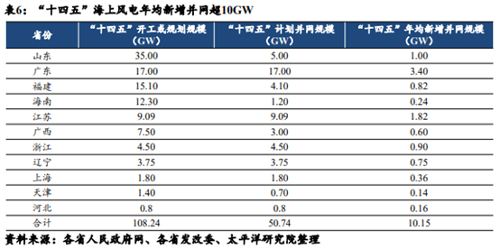 截至2022年9月末,沿海11省市均提出了“十四五”期间海上风电发展计划,11省市“十四五”开工或规划的海风总规模已接近110GW,计划并网容量达到51GW左右。