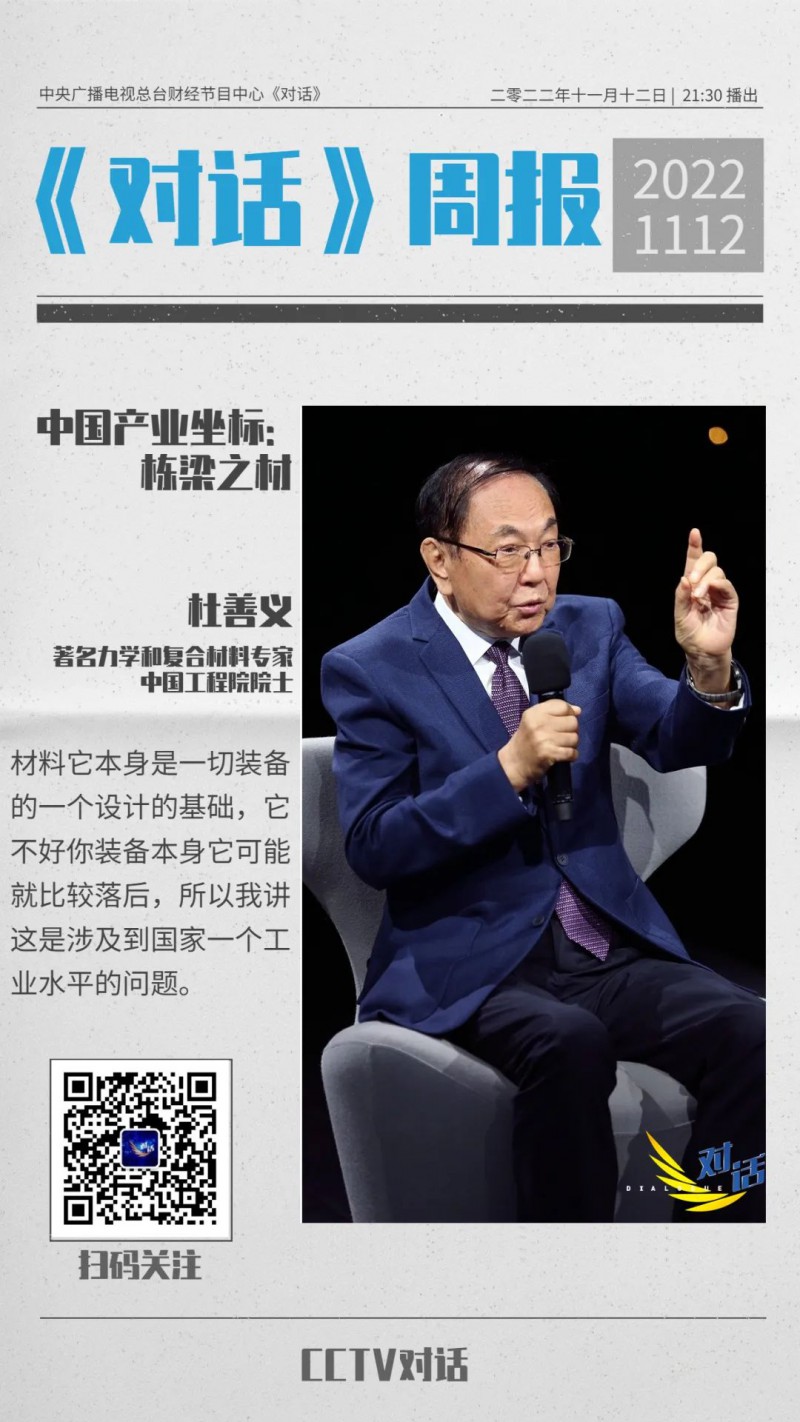 更多精彩内容请关注CCTV2《对话》11月12日晚21:30播出的#材料为王#@CCTV对话