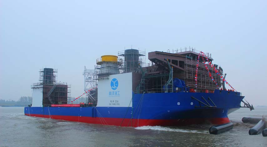当天上午6点50分,瓯洋海工OY-SEU800吨系列2#自升式风电安装平台(DJHC8068)在室外船台顺利下水。瓯洋海工代表,ABL监理公司及大津重工项目建造团队出席此次下水仪式。
