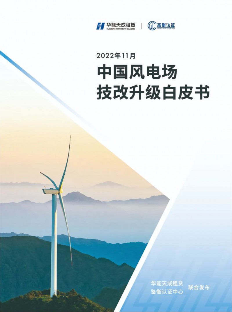 2022年11月18日,鉴衡认证中心与华能天成融资租赁有限公司在北京首届新能源资产管理大会联合发布《中国风电场技改升级白皮书》。该白皮书从市场、政策、技术、融资角度对风电技改进行了全面论述,将为国内风电场技改实践提供有效参考。