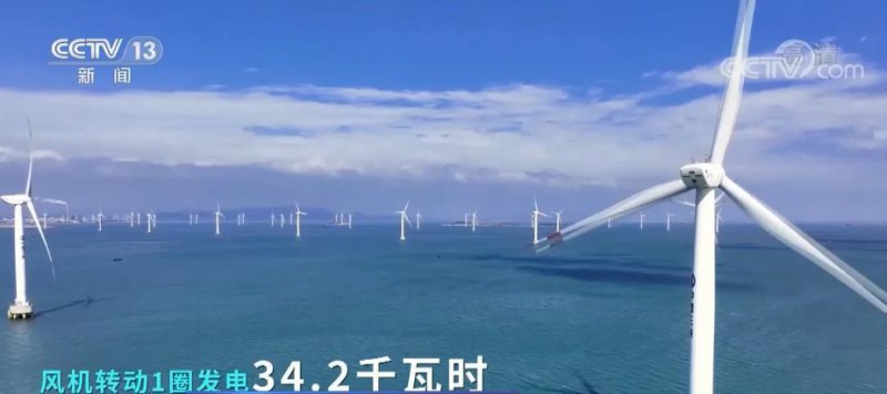 风机转动1圈发电34.2千瓦时,相当于三口之家7天的使用量。