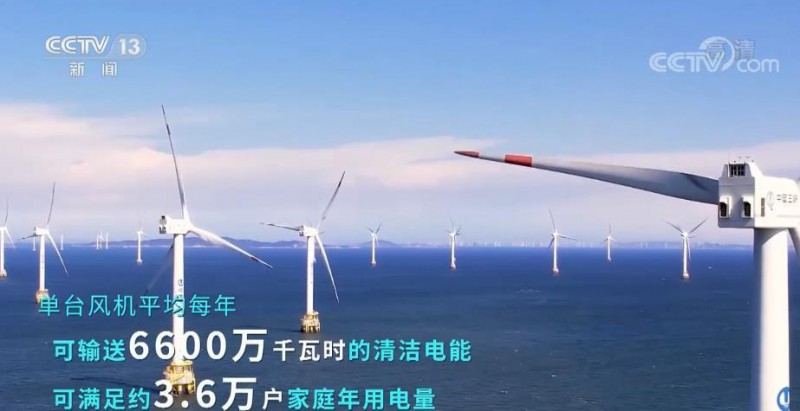 单台风机平均每年可输送6600万千瓦时的清洁电能,可满足约3.6万户家庭年用电量。