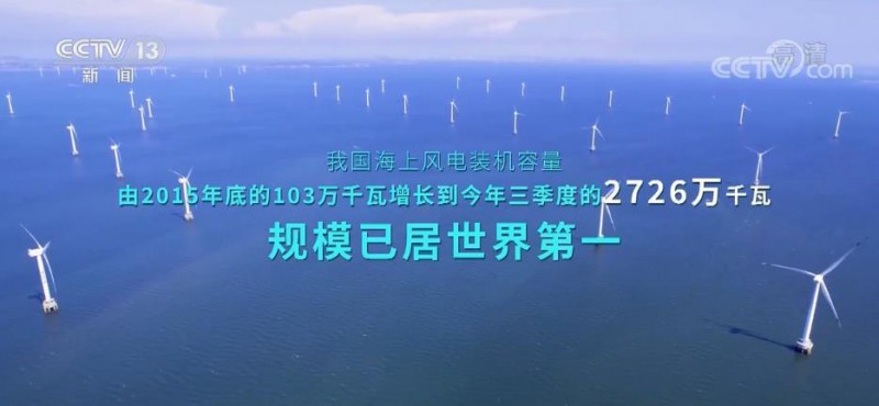 我国海上风电装机容量由2015年底的103万千瓦增长到2022年三季度的2726万千瓦,规模已居世界第一。
