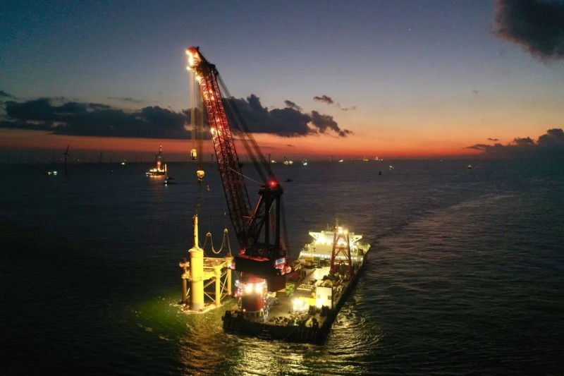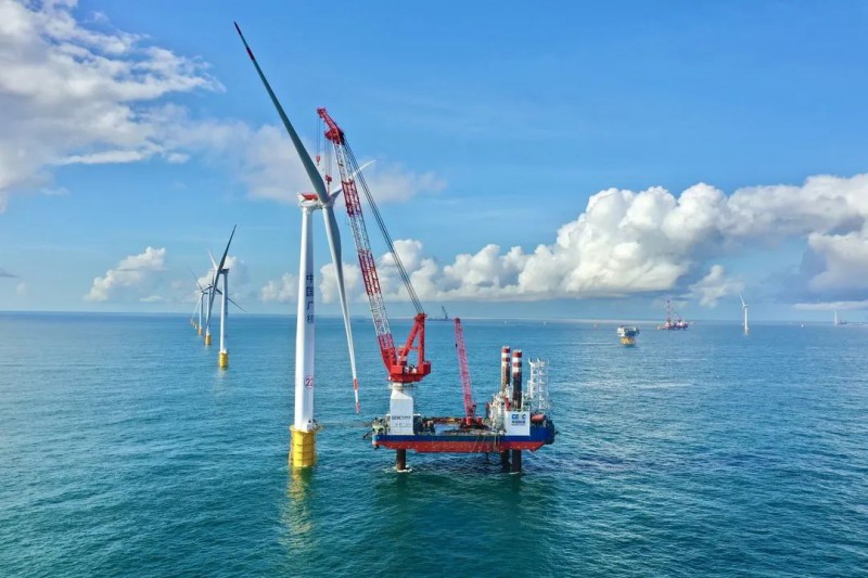 甲子一项目位于广东省汕尾市湖东镇南侧海域,是国内首个海上开工、首个并网发电、首个全容量投产的平价海上风电项目。项目总装机容量为500兆瓦,共安装78台6.45兆瓦风电机组,配套建设1座220千伏海上升压站,同时配套建设中广核后湖、甲子一、甲子二项目共用的500千伏陆上升压站,是国内目前送出电压等级最高的海上风电项目。