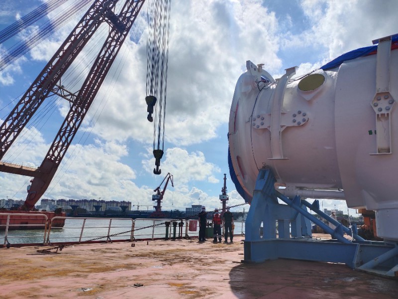 25日,载运海南首批海上风电设备的“千汇010”轮安全到达八所港。此次水上运输抵港的风电设备由5件重大部件组成,其中最大单体部件9.0兆瓦风电主机重达325吨,远超码头岸基吊装能力,需调用大型浮吊船进港装卸,作业过程对通航环境要求较高。