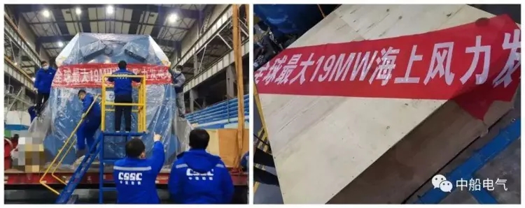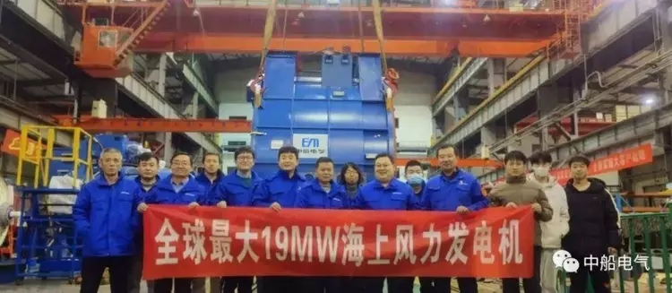 12月3日,全球最大的18MW海上风电机组传动链关键部件,19MW半直驱永磁风力发电机顺利完成总装及并网调试,即将发运中国海装山东东营海装风电装配产业园基地进行整机传动链组装。该型机组功率18MW,发电机额定输出功率19MW,实现了半直驱永磁风力发电机效率和性能的新突破,刷新了全球最大单机容量的新纪录。当下的中船电气,已阔步迈向20MW级大型化风机领域。