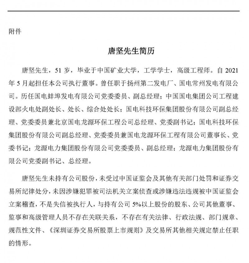 龙源电力董事长调整!