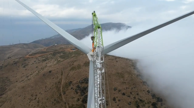 彩云之南,御风而行。12月20日下午17时,昆明市东北部海拔3300多米的高原上,在中联重科履带式起重机的助力下,一台全国单机容量最大的6.7兆瓦“巨无霸”风机成功吊装,其叶轮直径达到191米,刷新了世界高原山地风机建设纪录。