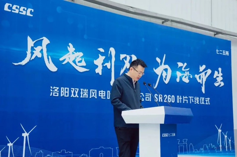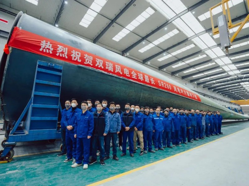 SR260叶片的开发是双瑞风电以实际行动落实党的二十大精神和集团公司大力发展清洁能源的战略举措。在集团公司和725所的指引和大力支持下,双瑞风电坚持创新引领、向海图强,在风电叶片领域踔厉奋发、勇毅前行,近年来相继打造了国内最长风电叶片SR171、国内首款百米级叶片SR210、国内首款大批量生产的百米级叶片SR220及加长款SR236,和本次下线的全球最长叶片SR260。叶片长度的每一次延伸代表着双瑞风电人对技术进步的极致追求和对品牌的执着坚守。