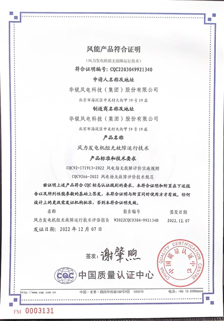 在此趋势下,国内风电企业纷纷开始发力,如行业内知名的华锐风电科技(集团)股份有限公司(以下简称“华锐风电),凭借其独有的“风力发电机组无故障运行技术”,于近日获得了中国质量认证中心的技术认证,成为引发风电行业关注的新焦点。