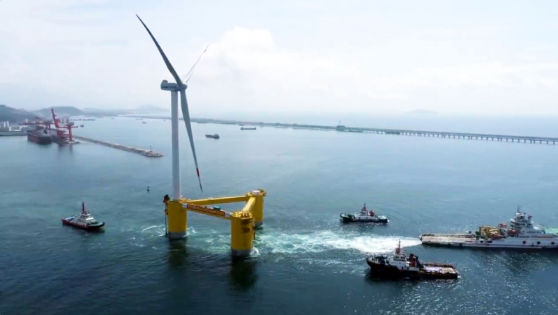 国内首台深远海浮式风电装备——“扶摇号”浮式风电机组将接入湛江外罗海上风电场,进行浮式风机试验。