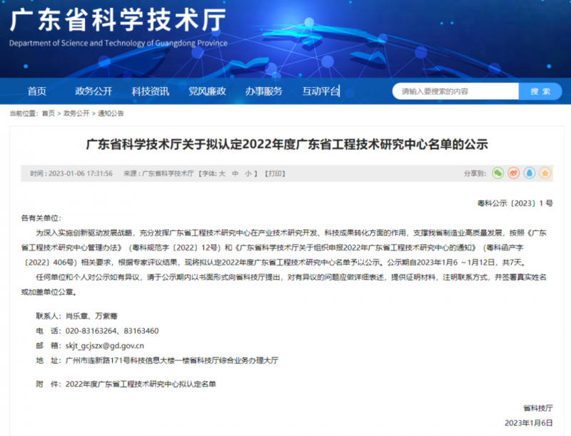 近日,广东省科学技术厅发布