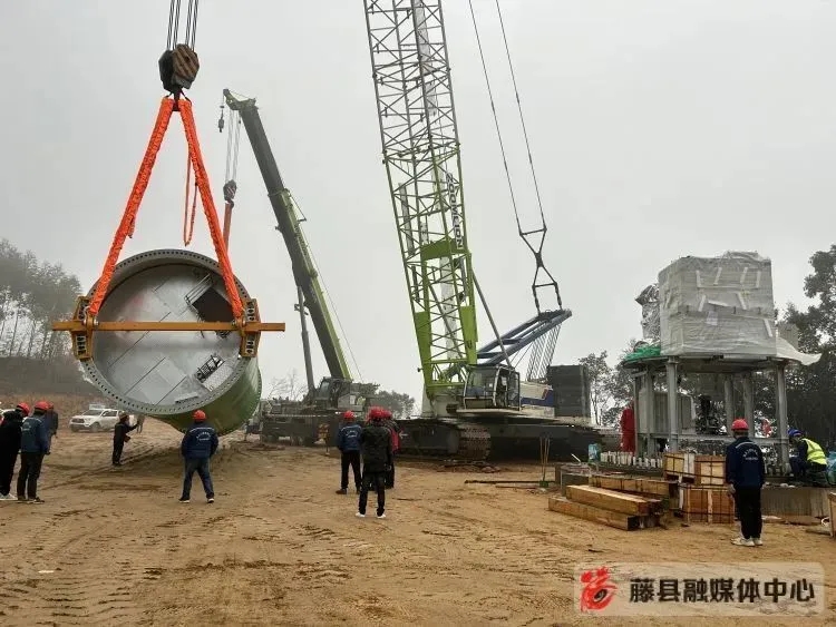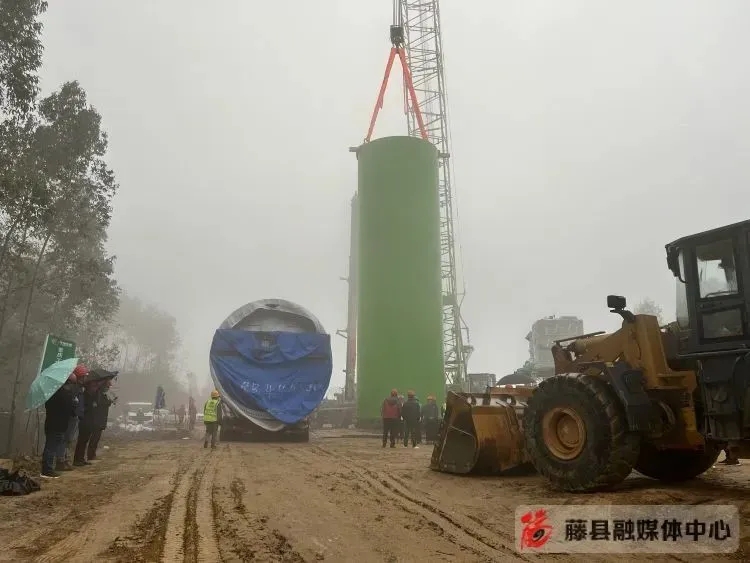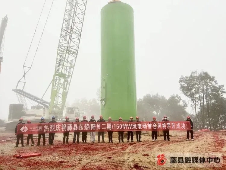 (藤县融媒体中心1月7日讯)1月5日,在地处东荣镇均常田常组的藤县东黎(陆贝二期)150MW风电场工程项目25号风电机位基地,首台风电机组成功吊装,标志着该项目建设取得了实质性突破。