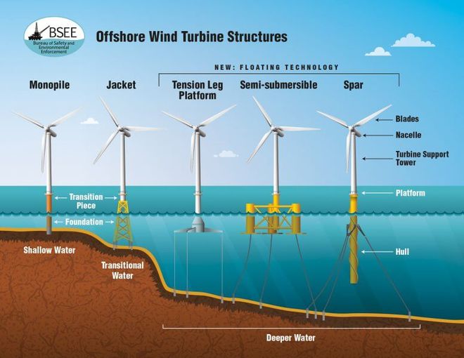 远海中所使用漂的浮式风电机组