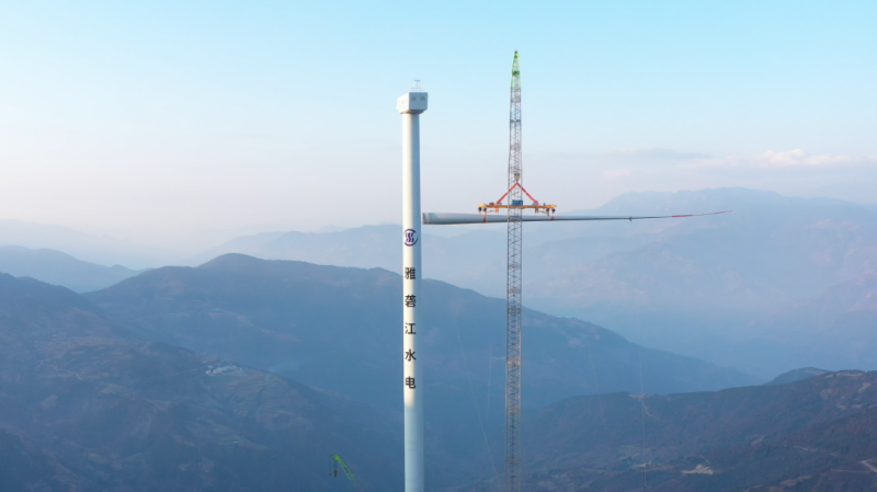 为了确保项目首次单叶片吊装顺利进行,雅砻江公司周密策划、严谨论证,与各参建单位深入研究叶片吊装时的轮毂朝向及主吊位置、如何保证叶片装配角度正确、如何确定缆风绳位置、吊装作业人员协调配合等问题。