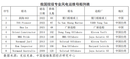 根据行业预测,到2025年末,全球将新增吊装超过9000台风机,其中有超过2000台将被放置在离岸40公里以外的海域,专业风电运维母船的需求持续增长。目前国内运维船市场中,能抵抗六级以上风力的船只数量较少,风电运维船的舒适性较差,难以满足高速增长的市场需求。随着我国海上风电快速发展并向深远海挺进,为保证未来能够快速、高效、安全地满足海上风电运维服务需求,风电运维母船新造船市场2023年将迎来高速增长。(撰稿人:张如菡)中国船舶经研中心