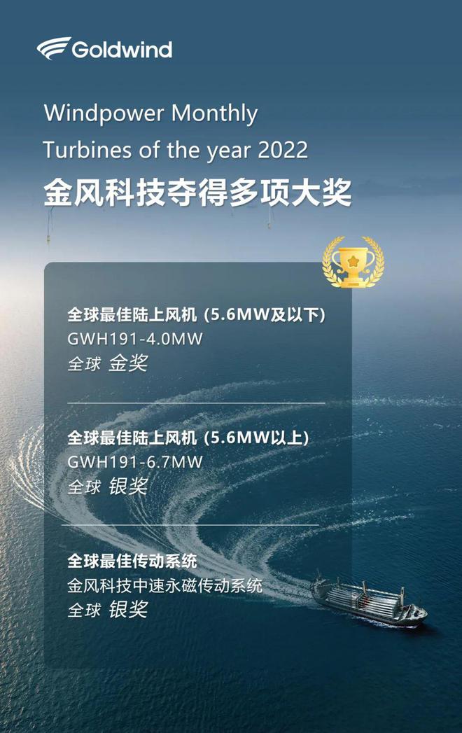 日前,Windpower Monthly(全球风电权威媒体)发布2022年度“全球最佳风电机组”评比结果。金风科技中速永磁系列风电机组及传动系统入选多个榜单,取得了一项金奖,两项银奖的斐然成绩,这也充分证明了金风科技中速永磁产品路线的全面切换获得关键肯定。