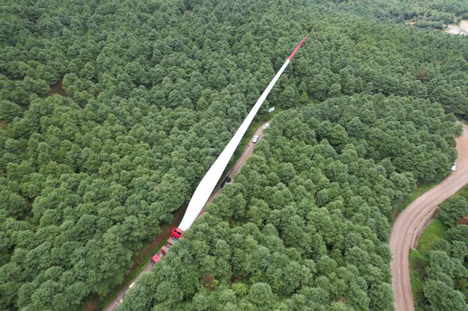 2022年11月,使用该机组的国电投富源西风电项目并网发电。预计年上网电量19.6亿千瓦时,每年可节约标煤约64.1万吨,每年减排二氧化碳约173.2万吨、二氧化硫约1171.8吨。