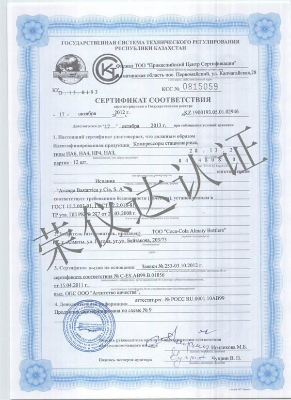 2、一年有效期GOST-K证书,有效期是一年。这种证书只有在经过1个哈萨克斯坦专家工厂现场审核后才能获得。
