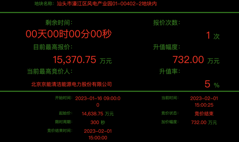 刚刚(2月1日),北京京能清洁能源电力股份有限公司以总价15,370.75万元成功竞得汕头市濠江区风电产业园01-00402-2地块,将布局落户“风力发电机组及零部件”产业项目,实现汕头高质量发展的开年重大突破!