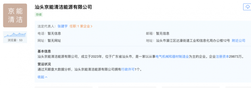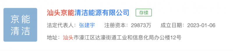 汕头京能清洁能源有限公司,成立于2023年,位于广东省汕头市,是一家以从事电气机械和器材制造业为主的企业。企业注册资本29873万。从天眼查资料显示,该公司高管或与国家能源投资集团有关?