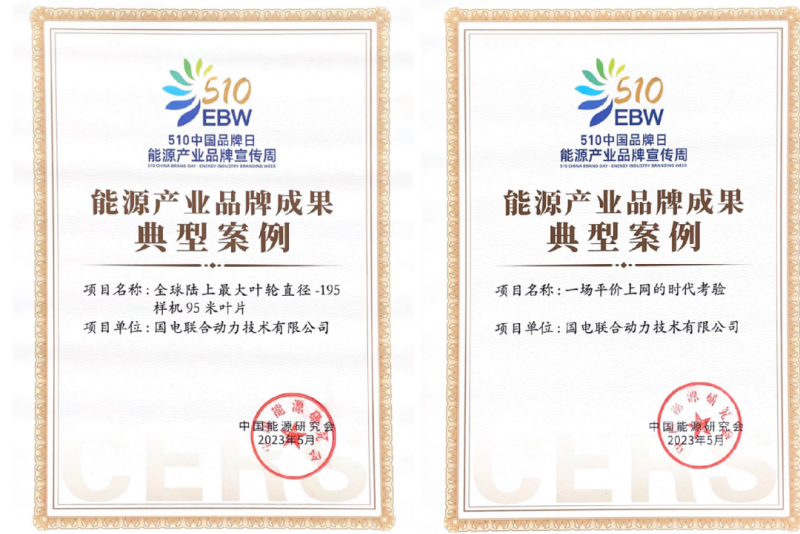 近日,首届“510中国品牌日·能源产业品牌宣传周”(以下简称“能源品牌周”)活动圆满落幕。联合动力报送的品牌技术产品《全球陆上最大叶轮直径——195样机95米叶片》和品牌故事《一场平价上网的时代考验》入选“2023能源产业品牌成果典型案例100”。