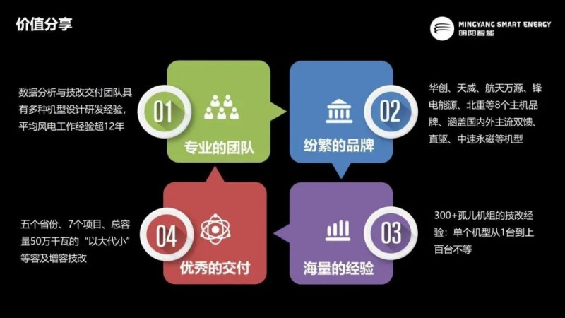 当前,随着平价上网时代的到来,润阳能源越来越多地关注风电场的可预测性,利用大数据精准分析,高性价比定制技改,提高风电场智能化运行水平,为客户带来更好的服务体验,创造更大的价值收益。自2015年以来,润阳能源持续在低效机组提质优化、风电机组综合技改、老旧及孤儿机组深度改造再利用等领域进行深入的积极探索。会上,刘昊重点分享了润阳能源在以上三个维度的实践与案例。