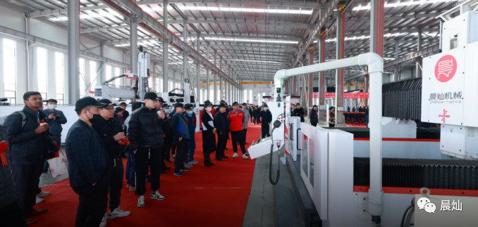 活动全程由晨灿机械江苏生产基地----晨和晨智能装备有限公司总经理陈灿为来宾详细介绍江苏基地建厂情况、现场观摩及设备演示。