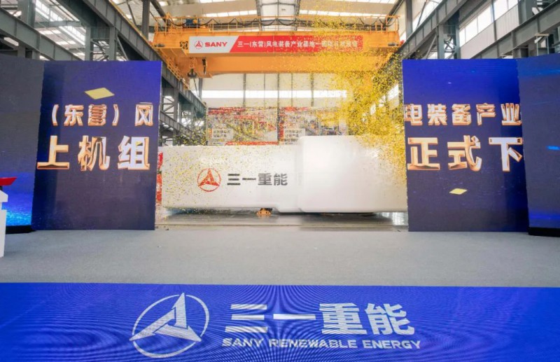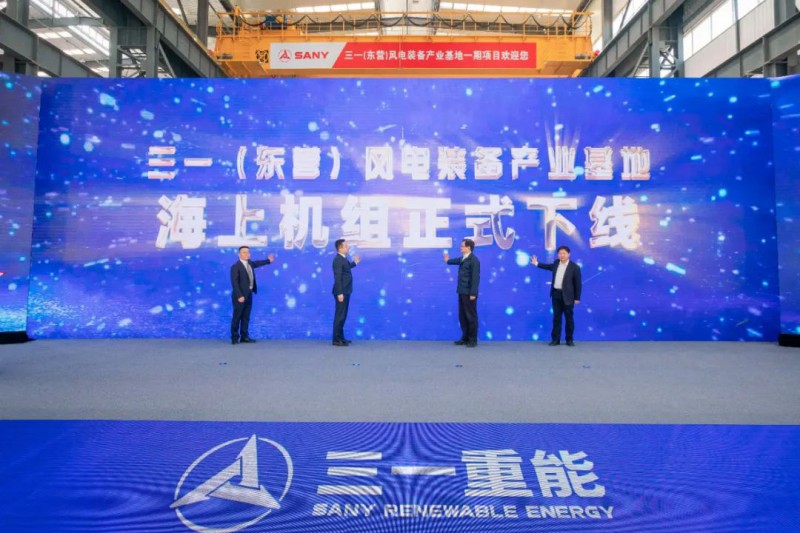三一(东营)风电装备产业基地于2023年2月14日正式开工投产,兼具海上和陆上机组的生产能力,基于三一重能长期、成熟的陆上风机技术积累,以“箱变上置高速双馈”为技术路线的首台海上风电机组也在这里诞生。