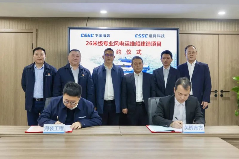 但随着海上风电装机容量的不断攀升,中国海装对专业运维船舶的需求也与日俱增。目前,中国海装要为近20个海上风电项目和近700台海上风电机组提供运维服务,为了保证未来能够快速、高效、安全地满足海上运维需要,中国海装于2023年2月与英辉南方造船(广州番禺)有限公司签订了2艘海上风电专业运维船建造合同,这是继“海装风电001”后,中国海装与英辉南方的第二次合作。