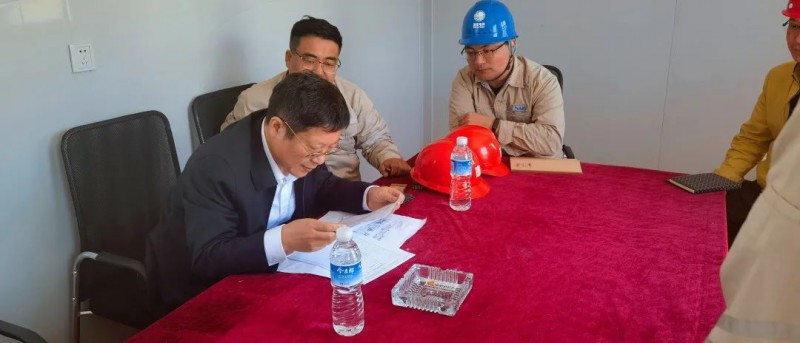 杨立华首先对施工现场总平面布置及配电间基槽开挖进行了实地考察,同时也对项目现场的施工图纸进行了审阅,听取了施工单位关于施工进度计划、设备排产及到场计划以及设备调试相关情况的汇报。