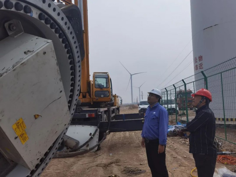 由于此次24台风机变桨轴承更换高风险吊装作业时间跨度较大,且同时开展三组吊装作业面,河北分公司分管领导、生产部相关同事及渤海区域各分管场长到岗到位,做好监督工作,时刻关注员工及外委人员身体精神状态,并积极排查现场安全隐患,为现场人员的安全保驾护航。