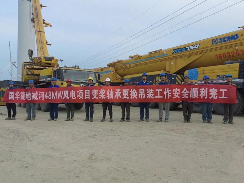 2023年6月3日,捷地减河风电场完成最后一台风机变桨轴承更换工作,至此,经历5次集电线路陪停,开展高风险吊装作业共计60天的捷地减河风电场东汽风机变桨轴承更换工作安全顺利完工。