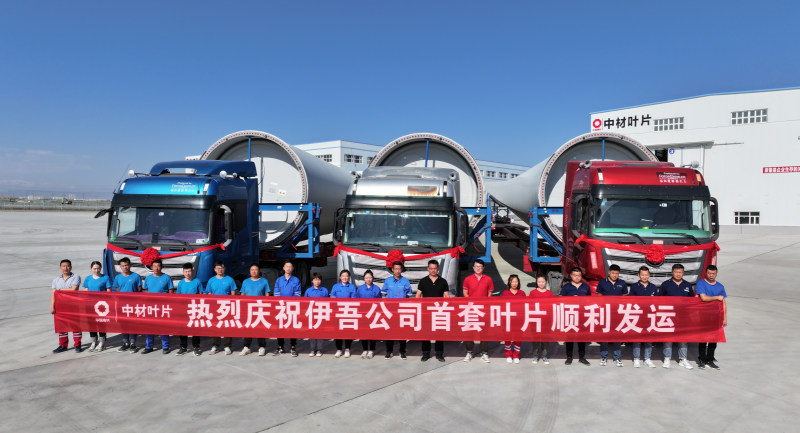 6月8日,中材科技(伊吾)风电叶片有限公司(简称中材叶片伊吾公司)GW93首套叶片发货仪式在淖毛湖镇举行,金风科技供应链工程师孔祥宽、伊吾公司总经理助理梁顺海等出席仪式。