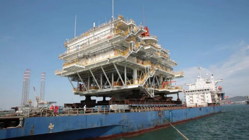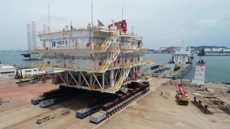 6月1日,中国石油集团海洋工程(青岛)有限公司出运苍南风电项目海上升压站上部组块。
