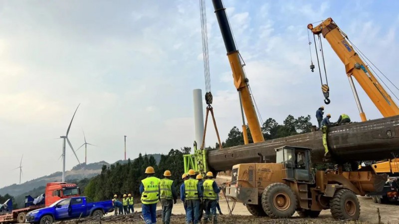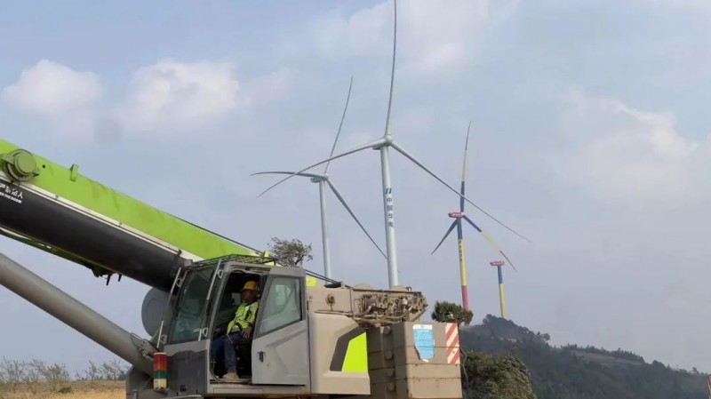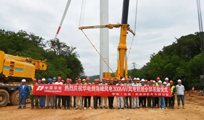 华电云南区域剑角峰风电场项目全部风电机组吊装完成