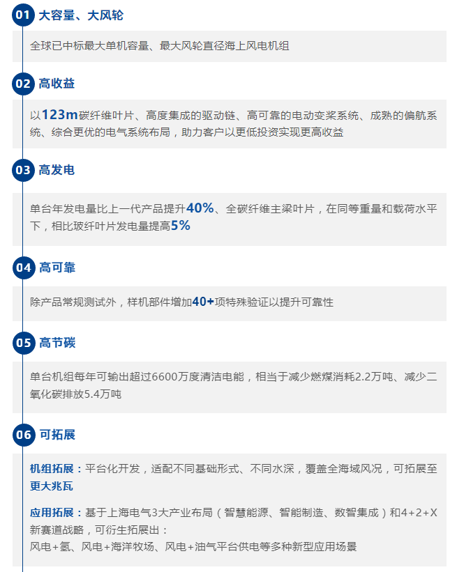 2023年6月11日,在首届上海国际碳中和技术、产品与成果博览会上,电气风电发布了全新一代海神平台16+MW全海域平台机组。同期,该机组在电气风电汕头基地下线。