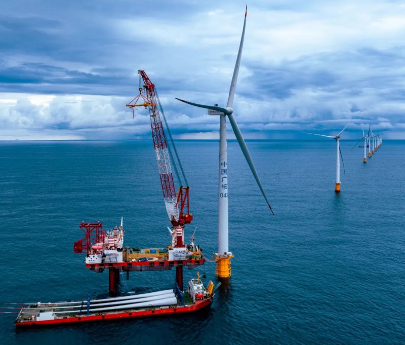 △人民日报:《中广核惠州港口海上风电二期首台风机完成吊装》