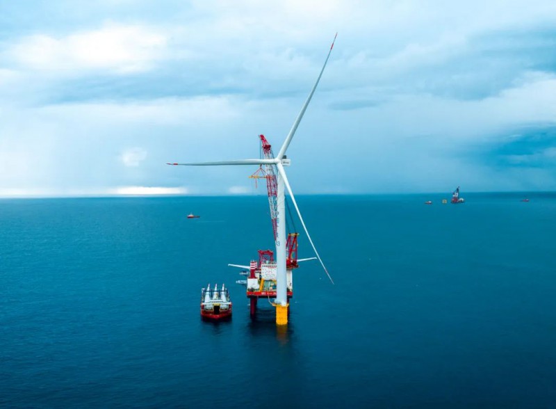 中广核惠州港口二海上风电项目位于惠州市惠东县港口镇南部海域,水深范围31m-40m,距离陆地最近距离约22km,拟布置10台8.5MW风机、45台12MW风机、9台14MW风机,配套建设1座220kV海上升压站,同时扩建陆上集控中心。此次吊装的风机为8.5MW机型,风机轮毂中心距海平面135.9m,叶片长111m。