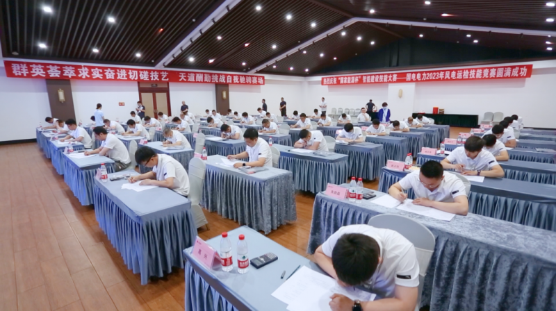 本次大赛由国电电力工会工作部、生产技术部、组织人事部共同主办,山东新能源公司承办,通过层层选拔,共有来自20家新能源单位46名选手参赛,大赛为期两天,将通过理论考试、塔底机舱实操决出最终名次。开幕式上,选手代表及裁判代表分别宣誓,开幕式结束后进行了理论考试。
