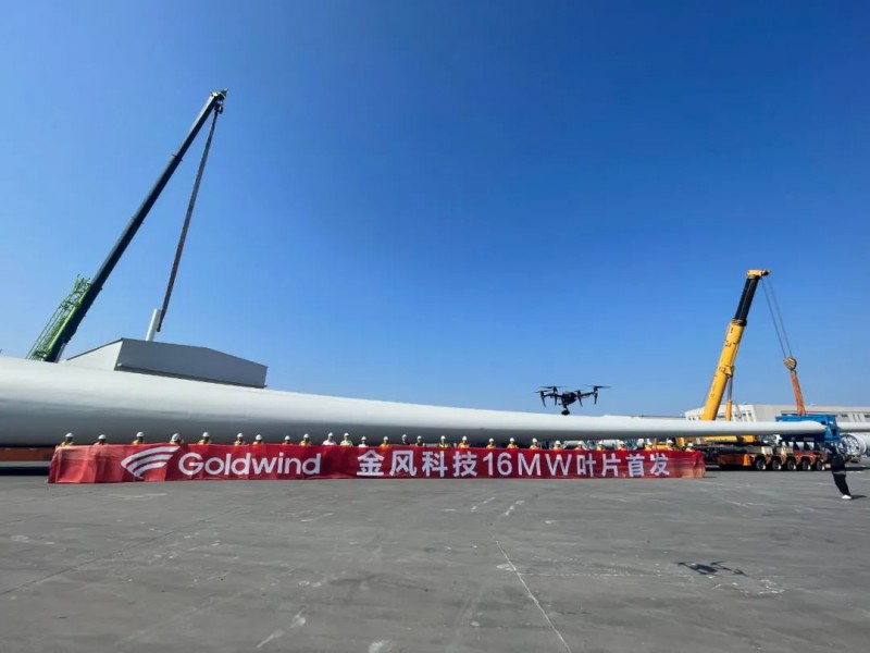 金风科技16MW海上风电机组的单支叶片长123米,能够同时容纳300个成年人并排站在上面;机组叶轮直径达到252米,相当于6架C919客机首尾相连,扫风面积相当于7个足球场。同时,16MW机组叶片的内部主梁结构首次采用碳纤维材料,重量减轻了20%,96%以上的材料实现了国产化;技术工艺上更拥有100%的自主知识产权。这为我国风电技术走向国际市场打下了坚实的基础。