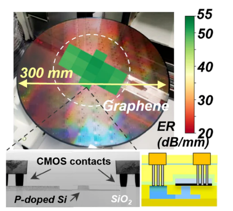 这篇科学论文讨论了在现实系统中使用石墨烯的潜力,以及证明其具有竞争力的性能、可靠性和大规模制造途径的必要性。研究人员使用单层石墨烯电吸收调制器作为测试工具,并将它们集成到 300mm 试点 CMOS 铸造环境中。通过分析来自每个晶圆数百个器件的数据,他们确定并优化了特定处理步骤对性能的影响。优化后,他们展示了 50 dB/mm 的调制深度和高达 15.1 GHz 的电光带宽,用于 25μm 长的设备。这些结果是使用 CMOS 兼容工艺实现的,该工艺允许大批量、低成本制造。研究人员认为,这项工作解决了石墨烯晶圆级集成的瓶颈,并且CMOS兼容的处理使基于石墨烯的器件与同一芯片上的其他光子学和电子学构建块的协集成成为可能。