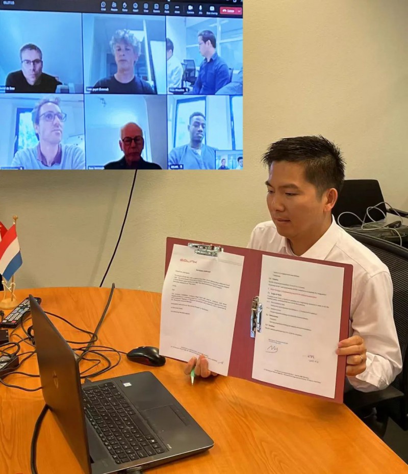 日前,哈电风能达尔文公司和法国Eolink公司签署法国大西洋海上漂浮式项目技术服务合同,用以支持法国大西洋海上漂浮式项目的高质量推进。此次技术服务合同采用“云签约”模式,哈电风能达尔文公司总经理甘胜,Eolink公司总经理Marc Guyot出席签约仪式。